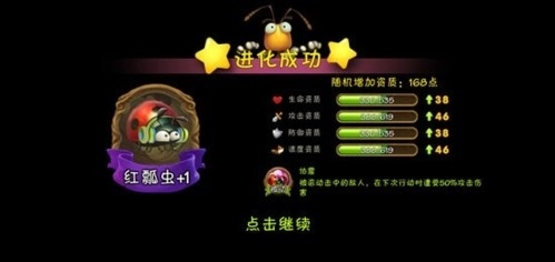 每只虫虫升级到10后,就能开始进行进化,进化需要通过1-8副本后就能解锁,同时进化需要消耗蛋白精华和树叶,而且进化之后,资深值是随机增加,同时还能获得特定的被动技能哦,随着等级提升越高,能解锁的战斗技能就越多!