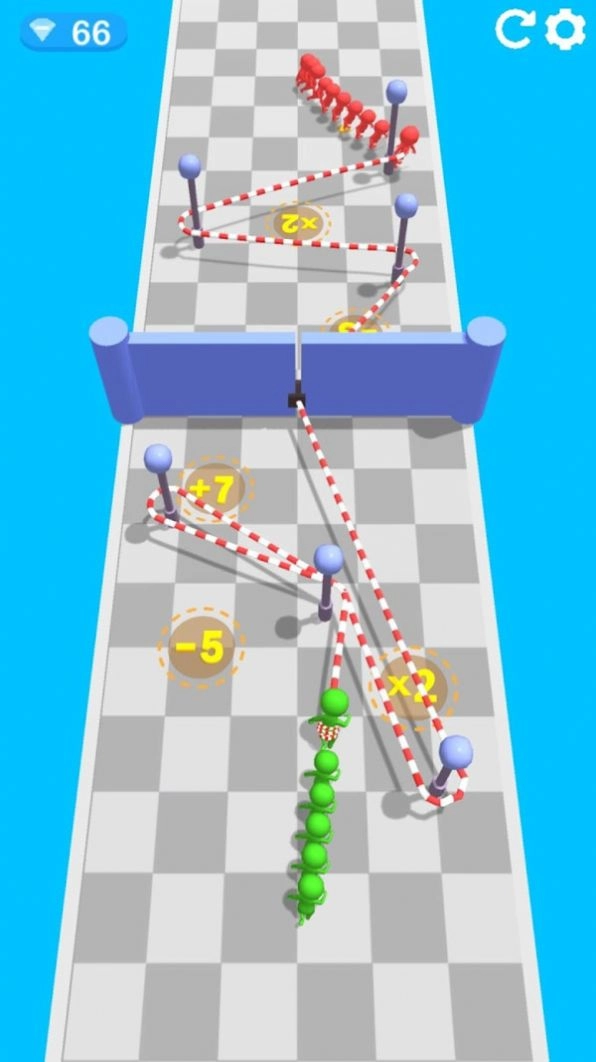 在《绳索人群》游戏里,玩家要挑战由复杂绳索网络与障碍物组成的关卡。你需要通过调整绳索的长度和位置,助力小人躲开陷阱,顺利抵达终点。每一关都设计得别具一格且充满挑战,需要玩家充分运用智慧与策略来通关。