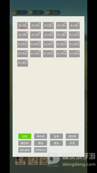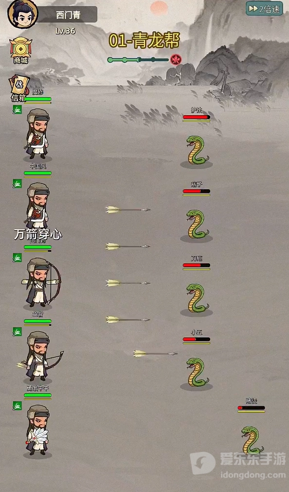 2. 游戏采用挂机式玩法,玩家可以放置角色,让角色自动探索江湖,自动获得经验和铜钱。