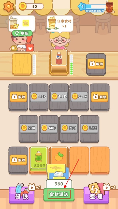 2、在没有足够的奶茶卡牌时,玩家可以点击下方的“食材派送”。