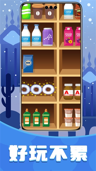 1、结合了货柜管理和消除玩法的,通过智慧匹配,达成通关目标;