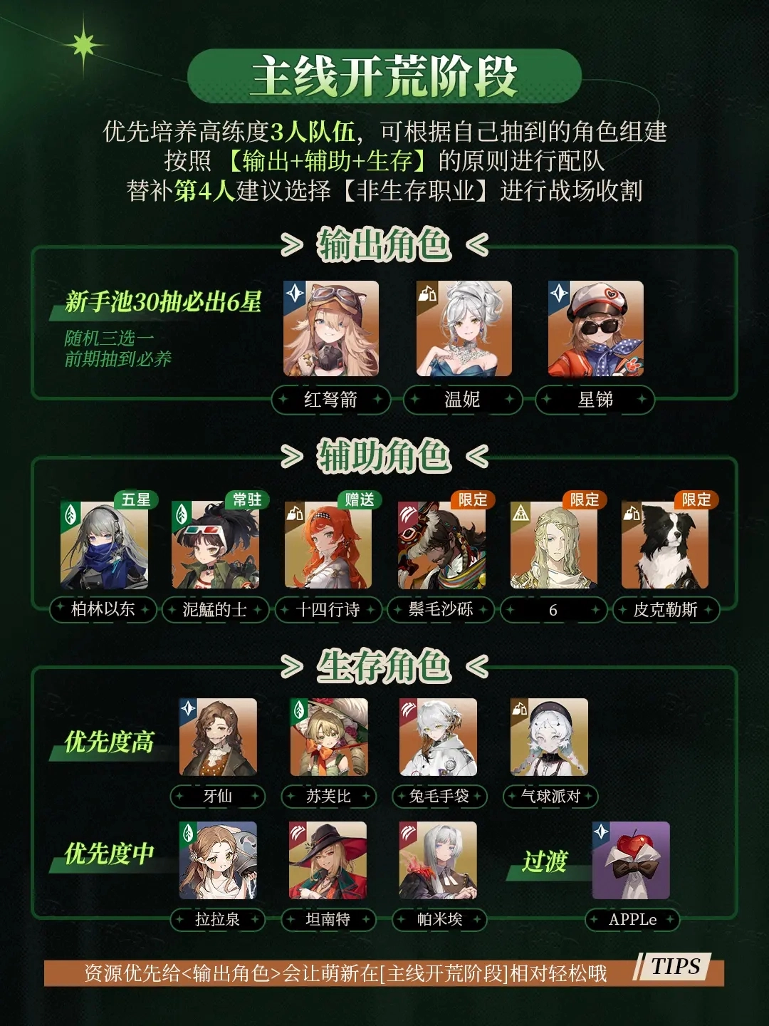 新加入的司辰们一定还有很多问题,小编尽量简洁地讲明白【前期配队丨后期培养】过程中大家需要的配队思路,等级/共鸣/洞悉需要升到几级?以及心相培养建议等方面~授人以鱼不如授人以渔!