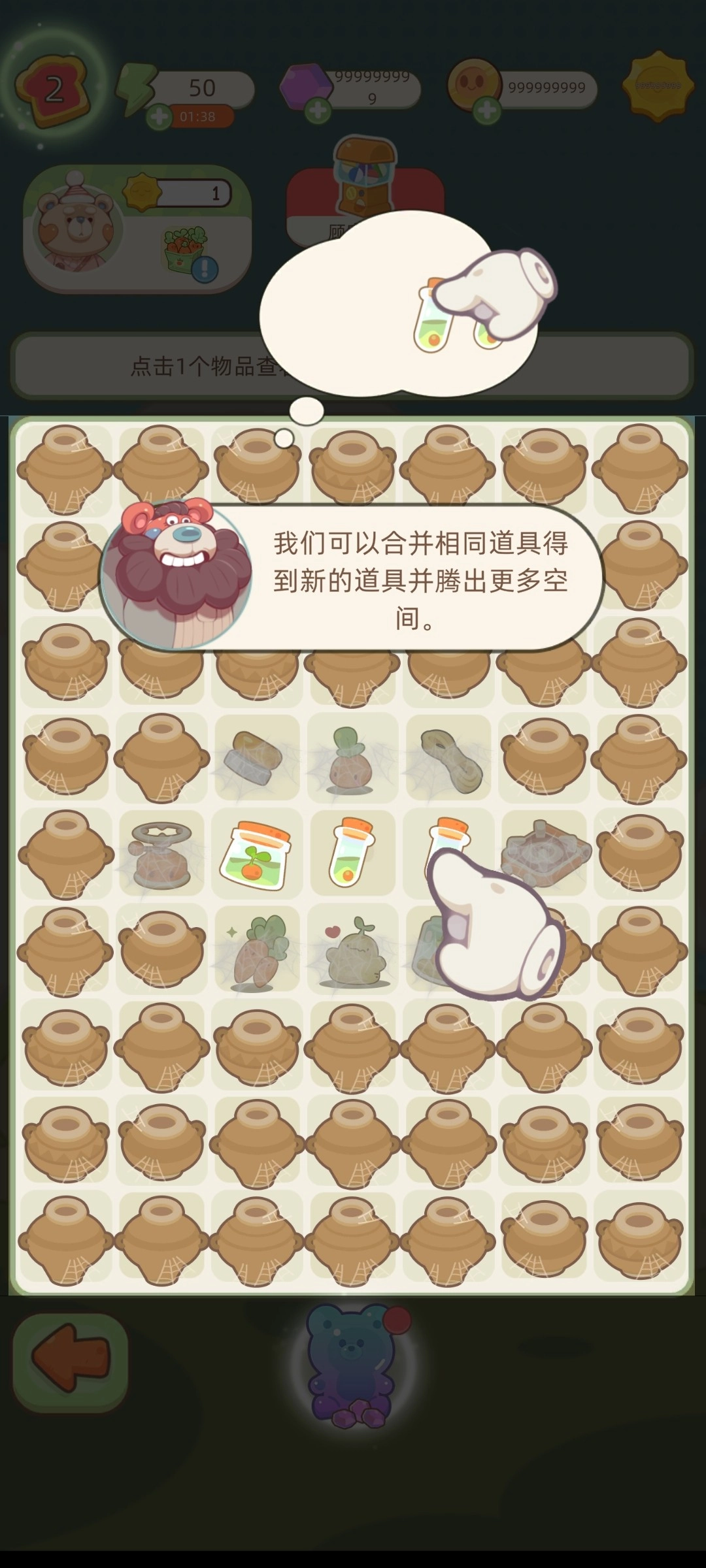 3、玩家需依照指引,将相同的道具进行合成、进化成为更高级的道具。