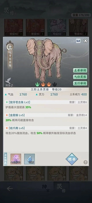 灵兽页可按五行筛选,增加一键放生功能。