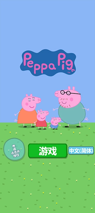 1、打开小猪佩奇主题乐园手机版应用,选择语言为“简体中文”,然后点击界面右下角的对勾按钮确认。
