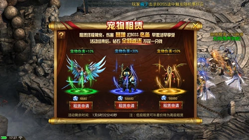 另外,宠物租赁也可大幅度提升宠物的伤害,且花费的钻石也会返还给玩家。玩家可不用花一分钱,也能获取强力输出