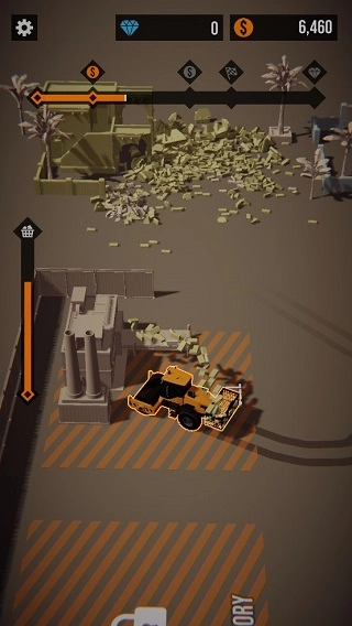 2.值得玩家注意的一点,拆迁过程中,机械设备的装载量具有一定容量,观看左侧的进度条,当装载量满载便可移动到图中所示的位置进行兑换。