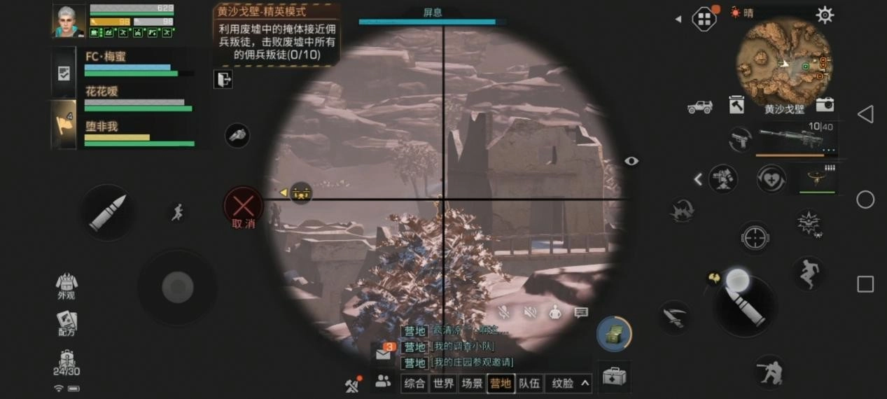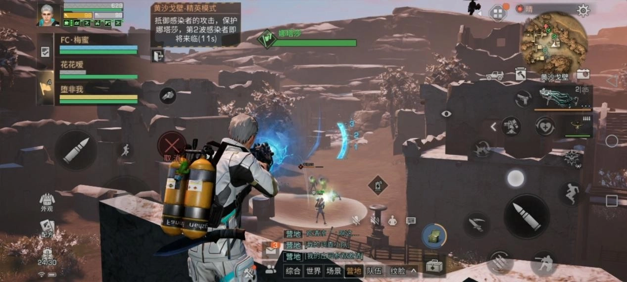 3:打完四波怪后,来到蓝色圈,需要突破狙击阵,共计2拨远程怪,建议使用守卫者狙击枪,第一波远程怪站在蓝色任务圈,蹲下攻击即可,第二波远程怪需要从山坡上跳下,站在门口和墙上攻击,打完怪后,一名玩家去找NPC,其他玩家每个人守一个门。