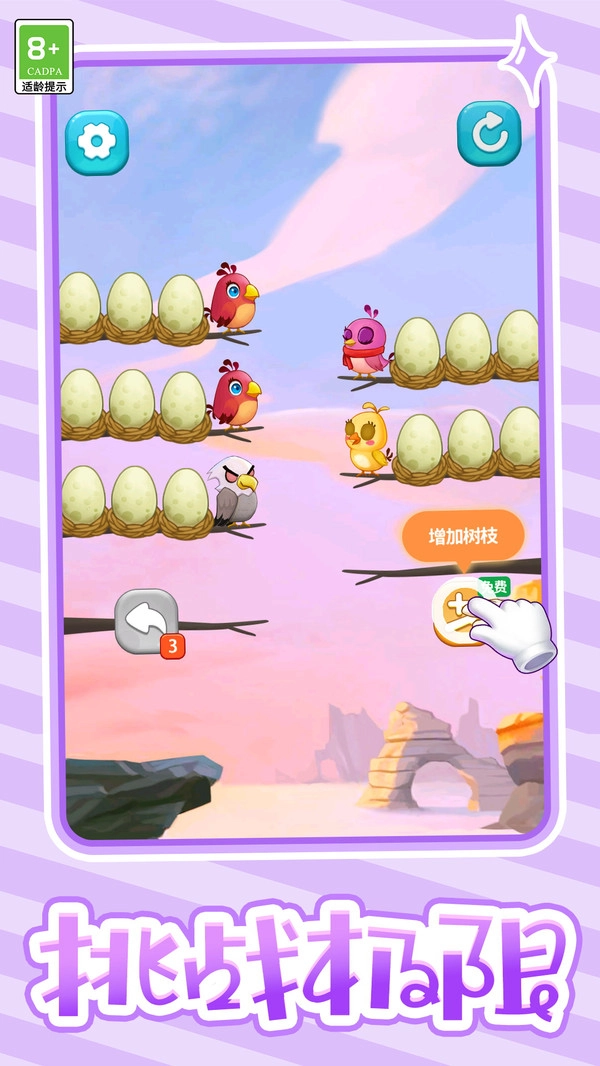 夏日缤纷消是一款超有趣的消除闯关游戏,玩家在游戏里得仔细留意关卡两侧的彩色小鸟。你要把相同颜色的小鸟移到同一根树枝上,要是关卡里所有同色小鸟都待在同一根树枝,它们就会被消除。等关卡内所有小鸟都消除干净,就能顺利通关啦,感兴趣的小伙伴赶紧来试试吧!
