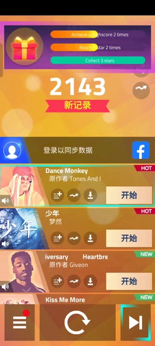 1、启动魔法钢琴师3,挑选一首自己喜爱的歌曲,然后开启游戏之旅。