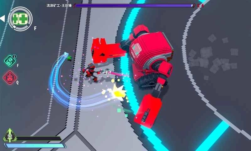 2、战斗以各具特色的BOSS战为核心,可以破坏机械BOSS身体,砍落武器部件,并拾取武器部件发动特殊攻击。