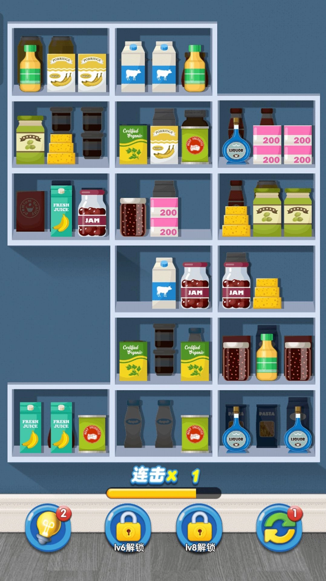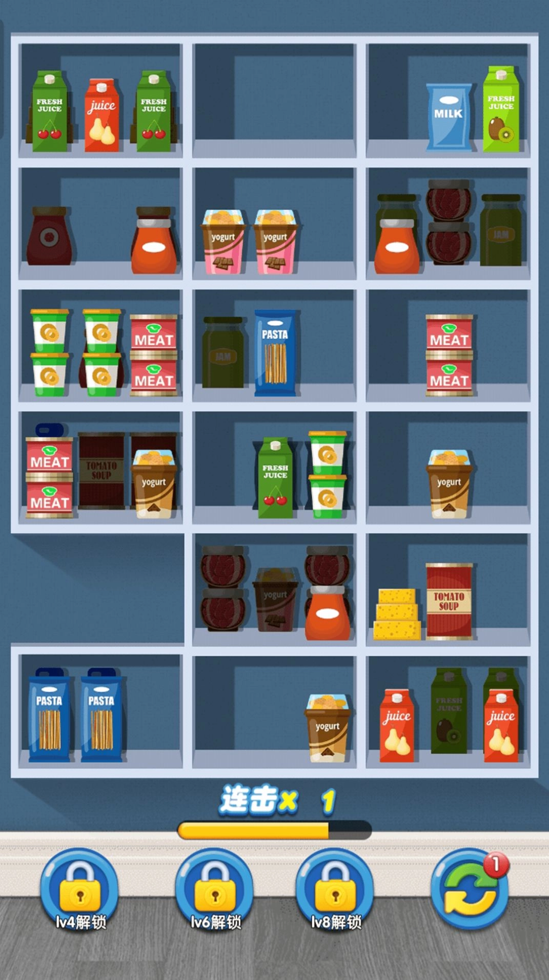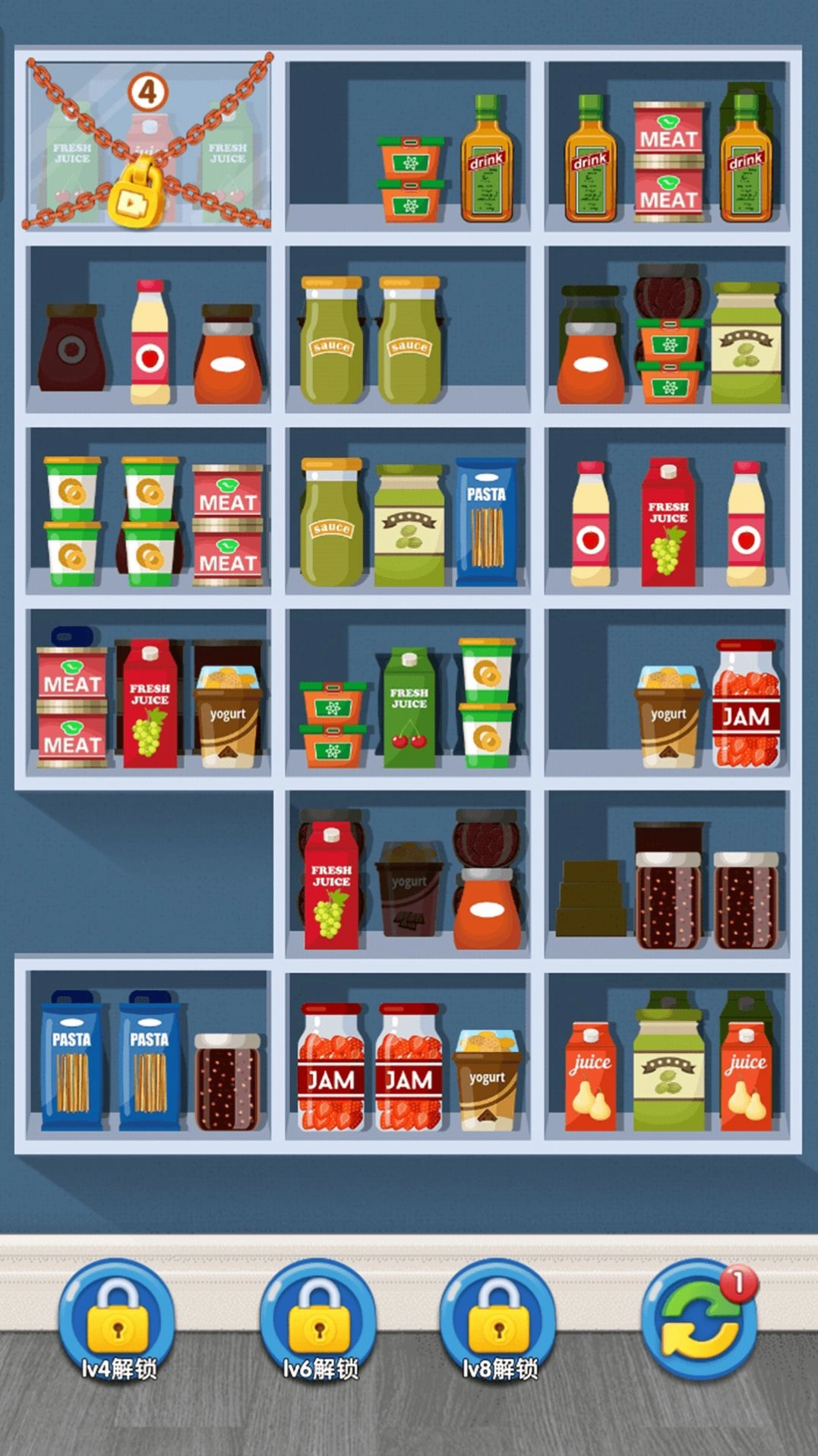 3. 通过匹配消除货柜上的物品,完成各种任务和关卡。