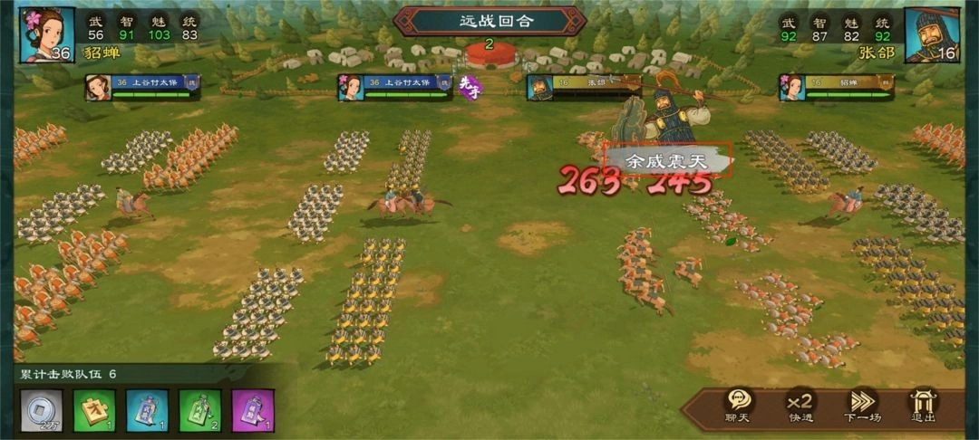 (2) 克制方武将部队全军覆没后,会对被克制方造成一次额外伤害。如貂蝉对战张郃时,张郃队伍全军覆没后,会触发【余威震天】对貂蝉的队伍造成一次额外伤害。