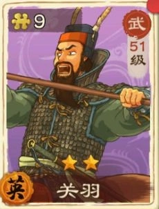 关羽:前期可以主力培养关羽,关羽培养起来之后他的伤害是很不错的,用来攻城和过沙盘演武足够了。首充送的宝物赤兔马,非常适合关羽。前期就算搭配散装宝物也比较容易成型,选择主将技的时候也不会和其他两个位置冲突,非常适合前期过渡时培养。关羽的基础天赋,还能让主将技【青龙】直接斩落敌方的武将,在对战全才时效果非常好。