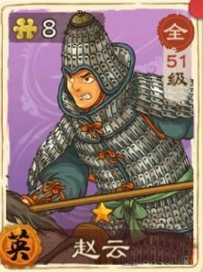 赵云:赵云可以算得上是打文官的战斗机了,他可以跨战力打赢一些比较强的文官。前期适合赵云装备的散装宝物也比较容易成型,还是很适合培养的。赵云的特点就是战斗前期抗伤害,后期再反攻。文官虽然前期爆发伤害很猛,但是赵云只要能抗住前期的爆发,后期文官在被职业克制的情况下,很难再继续发挥了。此外,赵云和关羽互为宿命,共同上阵能增加两者的伤害输出。
