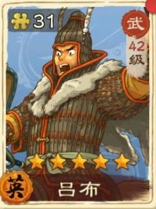 吕布:吕布也是非常适合用来通关沙盘演武的,伤害输出高,适合前期的时候培养。散装宝物搭配最推荐方天画戟+赤兔马,方天画戟能给吕布提升武力和暴击,也可以选择平替的倚天剑,这个也是可以加武力也能提伤害。