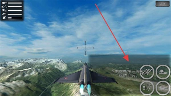 3、武器操作指引,点击右侧按钮,发射武器攻击,按提示使用火力,完成射击任务。