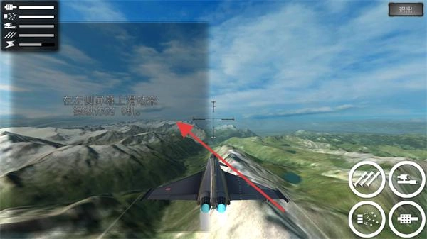 2、飞行操作指引,在左侧屏幕滑动,控制战机方向,适应3D飞行视角,准备战斗。