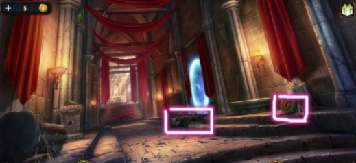 8.此时进去塔楼一层,水门台阶上拿到【火柴】,左边的雕像头上放蜡烛,火柴点燃拿到【紫精】,帘子那里用小刀割取【流苏】.