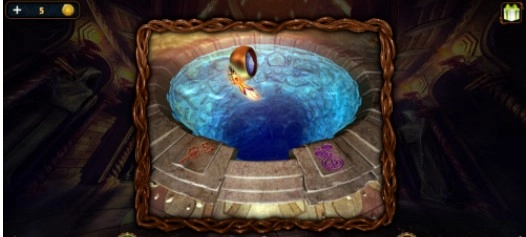 拿起1处的火柴,2处的水晶。4左上角有一个星星,放到3那里,按照下方纸的提示,按几个图形,顺序是12312,得到水晶。拿起5处的锤子,敲碎7处的玻璃,玻璃里是蛇形钥匙,玻璃上边有一根弦。捡起6处的箭,去3处组合弩弓。用弩弓射下8处的笼子,用蛇形钥匙开门,得到勋章。用火柴点燃9处的油灯,把勋章放到墙上,打开后把水晶放到箱子上,打开箱子,得到钟摆雕像。