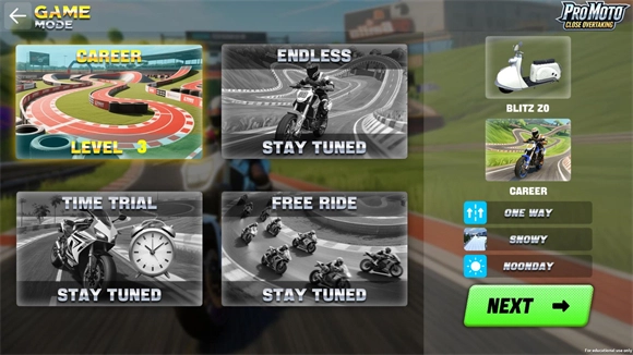 3、选好摩托车后可以挑选不同的模式来游玩。