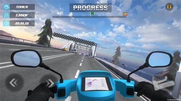 1、掌握驾驶技巧:使用屏幕左侧的虚拟摇杆控制摩托车的方向,右侧则设有加速、刹车和氮气加速等功能按钮。通过左右倾斜手机,还能模拟真实驾驶中的身体重心转移,让操控更加精准。