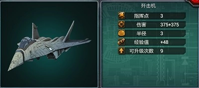 玩家的第一支飞行的攻击战斗部队,是入侵者战机。虽然生命力比较弱,还是垂直攻击的,但是它是优先攻击防御的建筑的,用防御比较厚的地面部队吸引火力再放出战机轰炸敌人的防御建筑可以起到出其不意的效果哦。