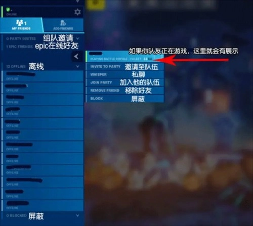 如果你点击任意一位EPIC在线好友,会出现弹窗