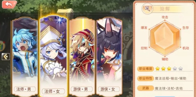职业转职推荐:法师可转为魔法师和吉他手,前者强调伤害,后者提供团队增益。