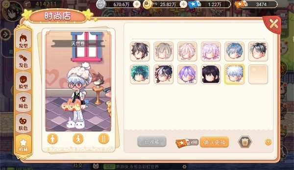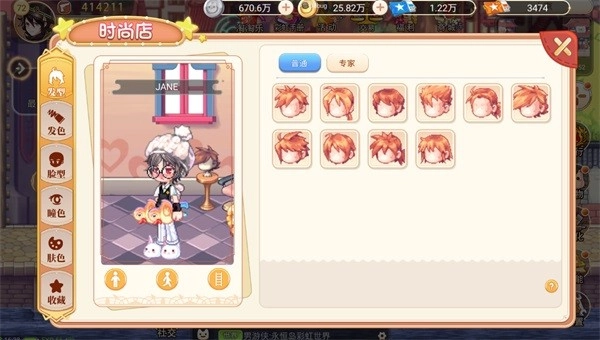 时尚店允许调整角色的外观,包括发型、脸型和肤色等。