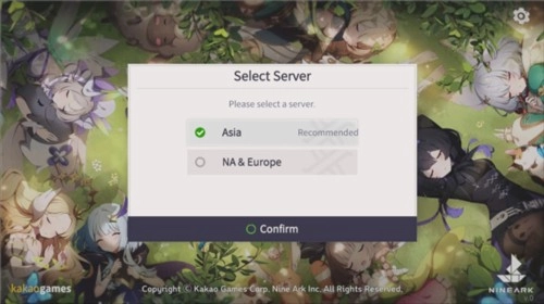 1、完成游戏安装后,点击进入游戏首先会看到服务器选择界面,上方是亚洲服务器(建议优先选择该区域),下方则是美洲服务器和欧洲服务器。