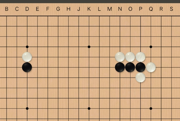 如图,这种情况下没有打劫规则双方可连续吃子。打劫规则:对方提劫,你必须在其它地方落子,对方若没选择粘劫你可提回。