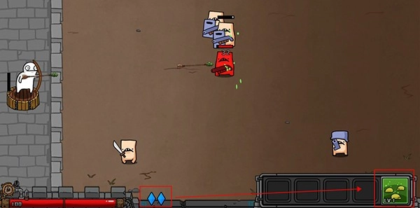 2、进入关卡后,游戏角色会自动发射弓箭攻击,攻击敌人会积攒怒气,满格后可以提高攻速,玩家也有点击右上角的绿色加速按钮加快游戏速度。
