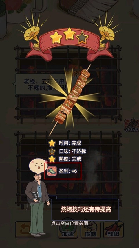 4. 不同的烧烤食物搭配可以获得更多的金币,玩家需要学会搭配食物。