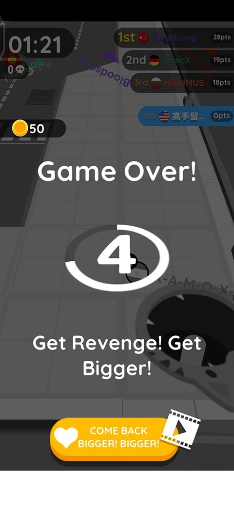 3、如果没有成功躲避,则会被其他黑洞吞噬。