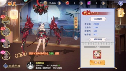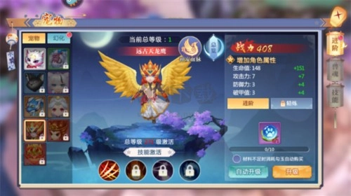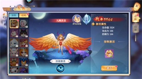 激活妖灵后,便会随身战斗,宠物带来的角色属性提升也是永久的,宠物品质越好加成属性就越多。