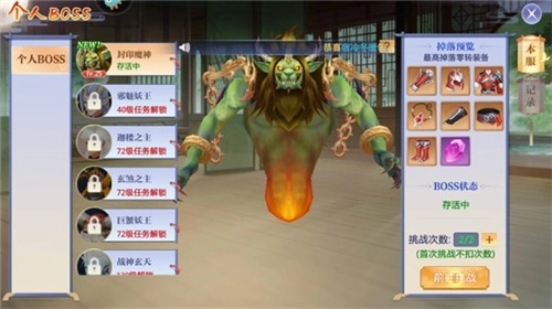 7、升级后就会解锁妖灵、宠物等系统以及混沌幻境、狩猎场BOSS等玩法了