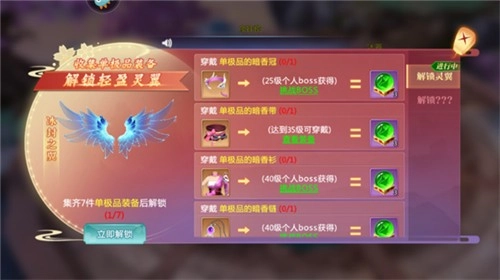 【灵翼】需要材料:灵翼进阶丹或灵翼祝福卡