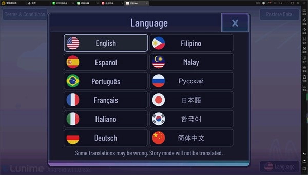 1、打开加查net游戏,进入游戏界面后,找到并点击右下角的Language选项。