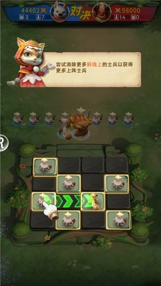 6、尝试消除更多斜线上的士兵获得更多上阵士兵;