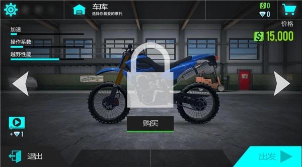 1、启动游戏,挑选一辆摩托车并点击出发