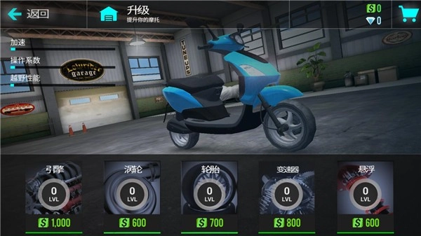 6、获得的现金可以用来给现有的摩托升级零件,提升性能