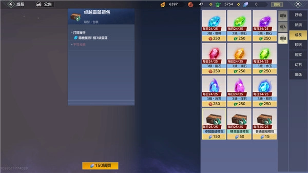 2、商店购买。旅者可以在商店·成长灵蕴处,使用脂玉购买三级灵蕴,其中琅轩、脂石和冷石每个250勾玉,其余每个灵蕴2EO指玉,每种灵蕴每日限购25个。旅者还可以在此处使用灵韵精华(灵蕴精华透过熔炼灵蕴或完成围狩图获得)兑换卓越/精良/普通灵蕴礼包,打开灵蕴礼包可获得随机灵蕴,
