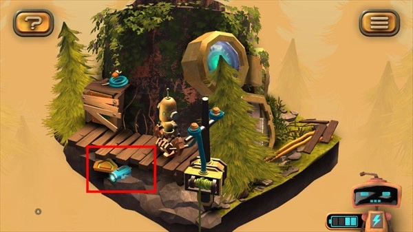 1、在图片左下角能看到一个电池,点击收集它之后,机器人的电量就会增加