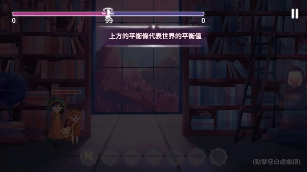 上方的平衡条代表世界的平衡值。数值会随着时间流逝,若数值归零,则必须重新游玩!