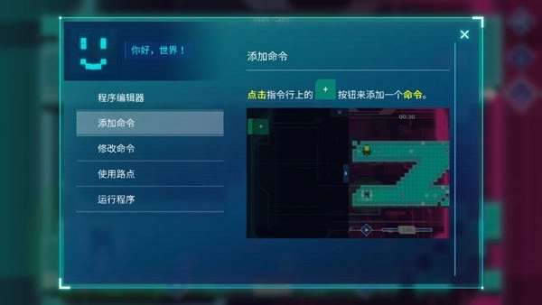 游戏中玩家的任务就是要帮助虚拟世界中的机器人打败敌人,但是玩家不能直接控制这些机器人,而是要为它们编写AI程序,通过程序来控制它们。在每一关里,玩家不但要分析过关的策略,还要给机器人编写程序以实现自己的策略。在游戏后期,玩家要为多个不同类型的机器人编写不同的行为模式,并让它们配合过关,具有相当的挑战性。
