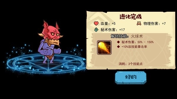 2、点击头部、身体、手臂、腿部或者尾部实现进化,每次的进化都能为你带来血量、物理伤害、秘术伤害和技能的加成