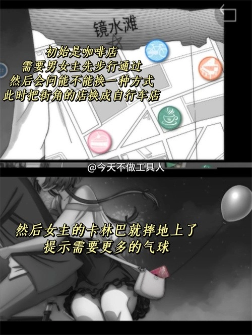 ⑥切回自行车店,向下划,把气球给女主。