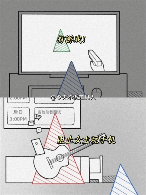 6. 天平:把女主和电子设备分别拖到男主身边