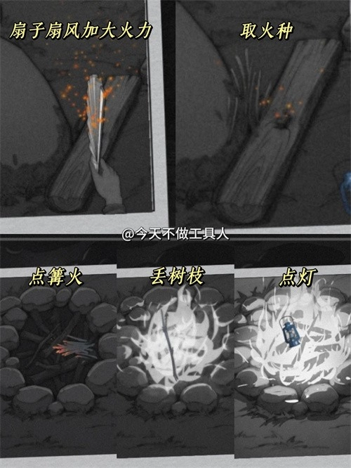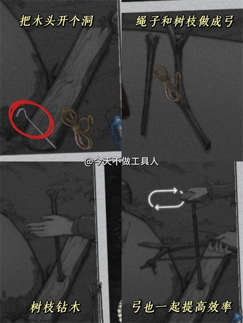 ⑤黑色树枝取火